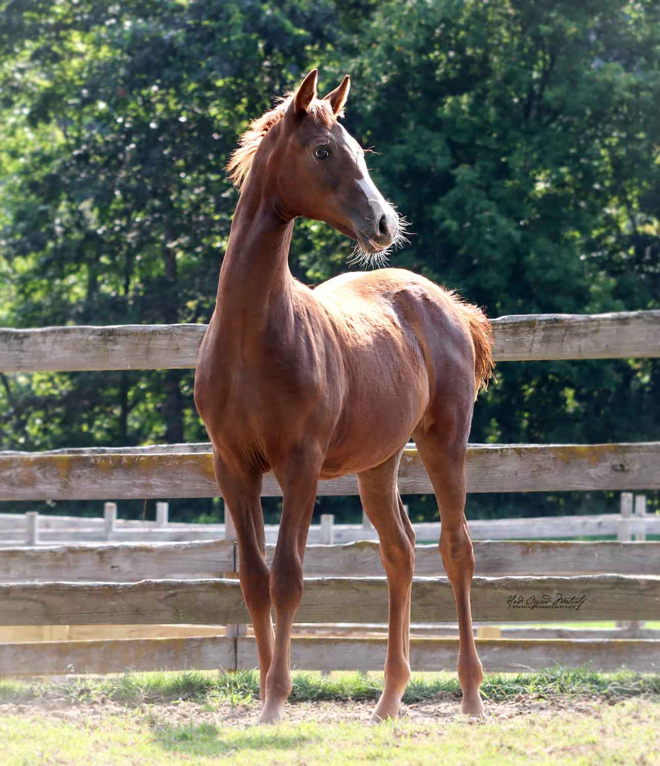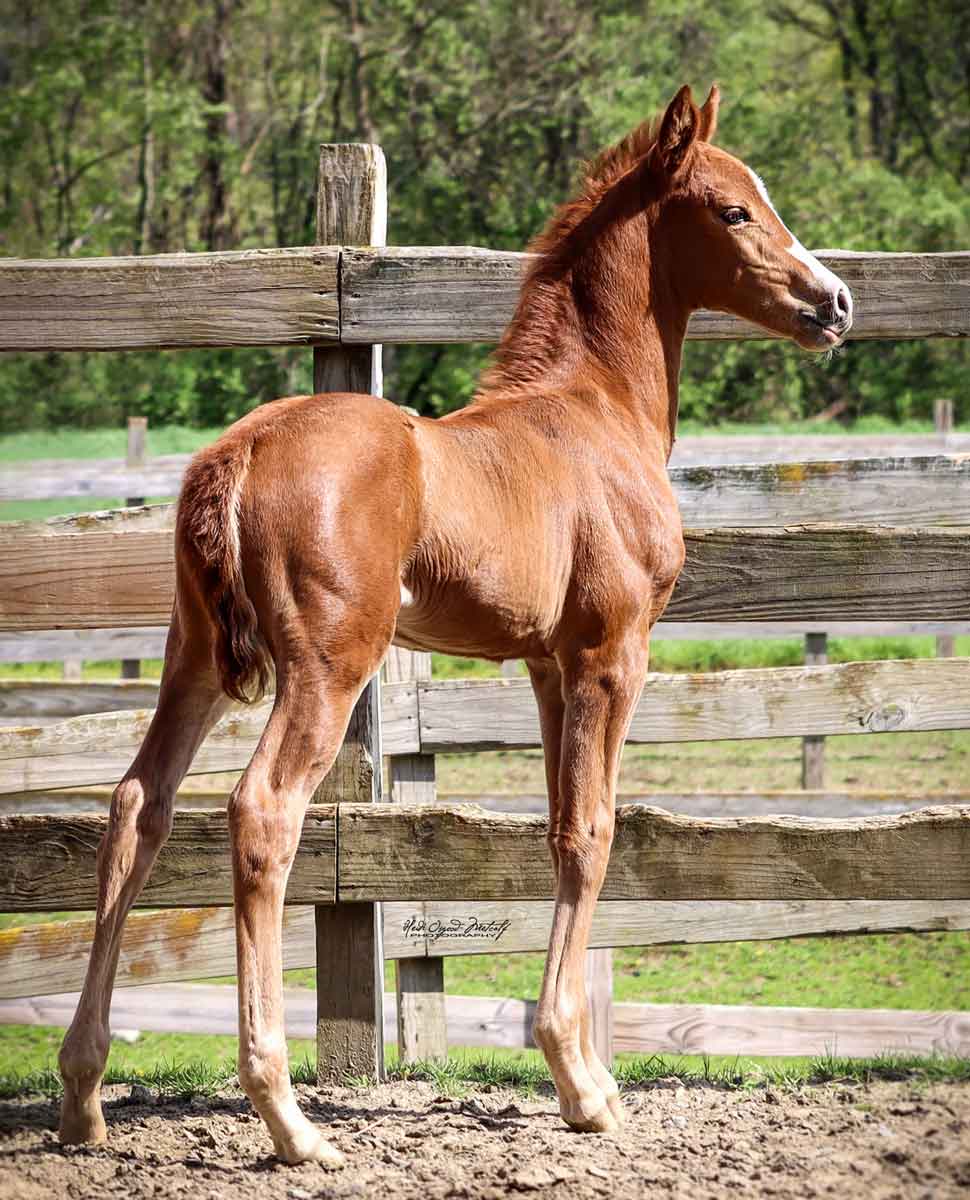 2025 Chestnut Mare | Arriving on May Day, this upheaded, beautifully trimmed filly is exactly what we ordered from Hollywood Godfather CH!